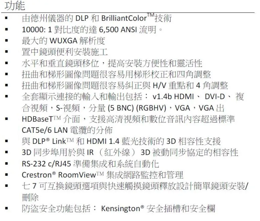 | 亮度 | 6,500 | ANSI |
