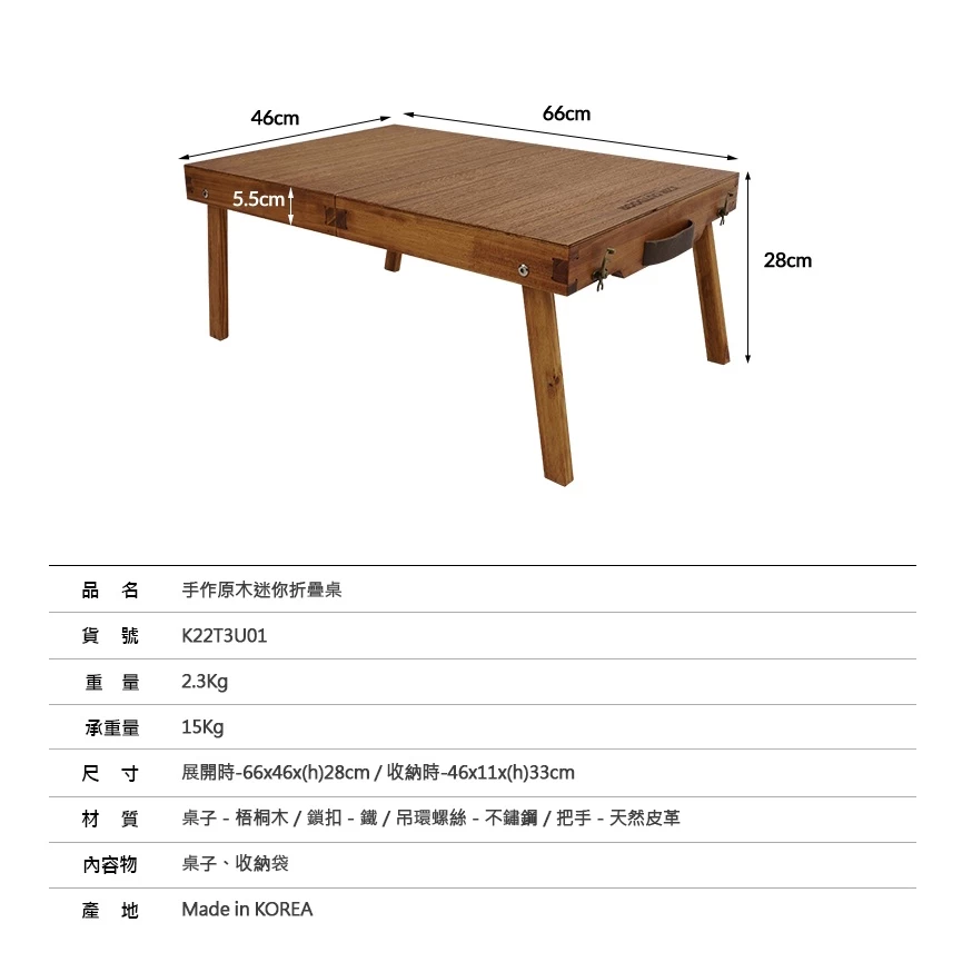 🔹每一種材料和細節的設計都深思熟慮,是一款適合露營、野餐的手作原木迷你折疊桌
