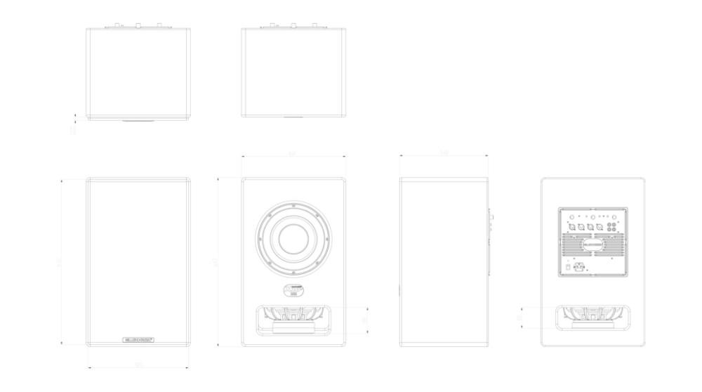單體尺寸 10吋x2 額定輸出功率 500瓦(峰值1000瓦) 頻率響應 20Hz~200Hz +/-3dB 相位調整 0~180度 輸入、輸出端子 RCA x2, XLR x2 尺寸規格