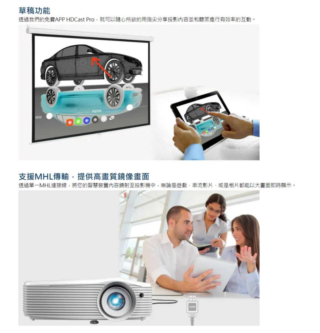 訊號相容VGA, SVGA, HDTV(720P), WXGA, WXGA+, SXGA, SXGA+, UXGA, HDTV(1080p), WUXGA