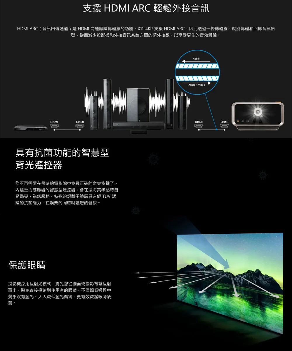 商品峰米 T1 Formovie Theater 4K超短焦雷射電視 台灣公司貨 3年保固+送Chromecast Google TV