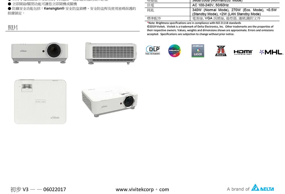 商品Vivitek DX931 XGA 4500流明 商務投影機 原廠公司貨