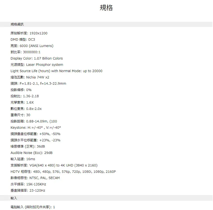 商品ROLY 樂麗 RL-A500U [WUXGA,5000流明] 輕量級雷射投影機 長效雷射光源 現貨含稅