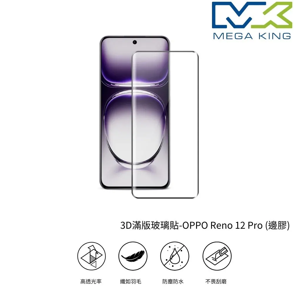 商品MEGA KING OPPO Reno 13 Pro 3D玻璃保護貼 (全膠)