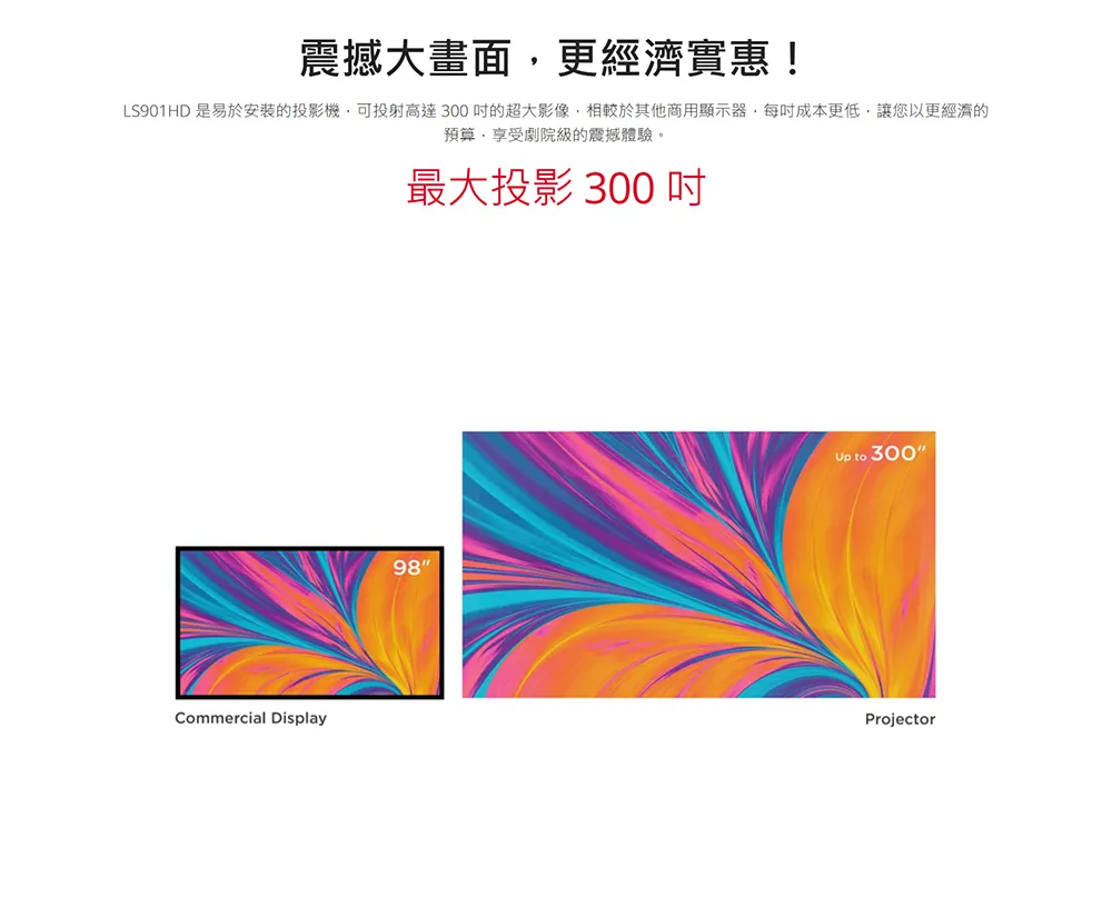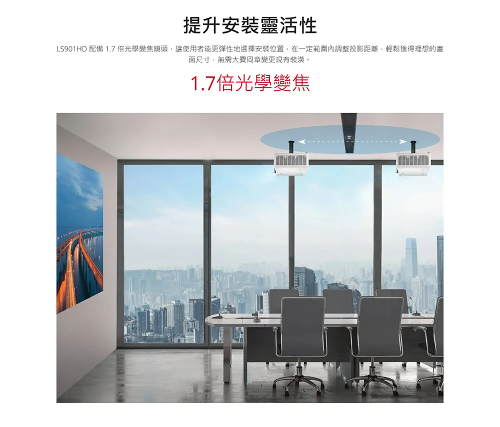 ViewSonic LS901HD 專為大型場館顯示器量身定制。它採用 0.65 吋 DMD 晶片,透過 DLP 技術提供高達 6,000 ANSI 流明亮度和高原生對比度,可在高達 300 吋的螢幕上呈現驚豔的視覺效果。憑藉 1.7 倍光學變焦,LS901HD 可靈活設定以滿足各種安裝需求,而垂直鏡頭移位和水平/垂直梯形校正功能則讓安裝過程變得輕而易舉。此外,LS901HD 還支援縱向模式和 360° 投影功能,可滿足更進階的需求。全面的 LAN 控制功能可確保與現有裝置管理網路無縫整合。這款投影機還配備 HDMI 2.0b 接口,讓您欣賞支援 HDR 和 HLG 的原始 4K 畫質內容。 LS901HD 採用先進的第三代雷射螢光粉技術,擁有長達 30,000 小時的出色使用壽命,可有效降低企業和教育機構的維護成本。