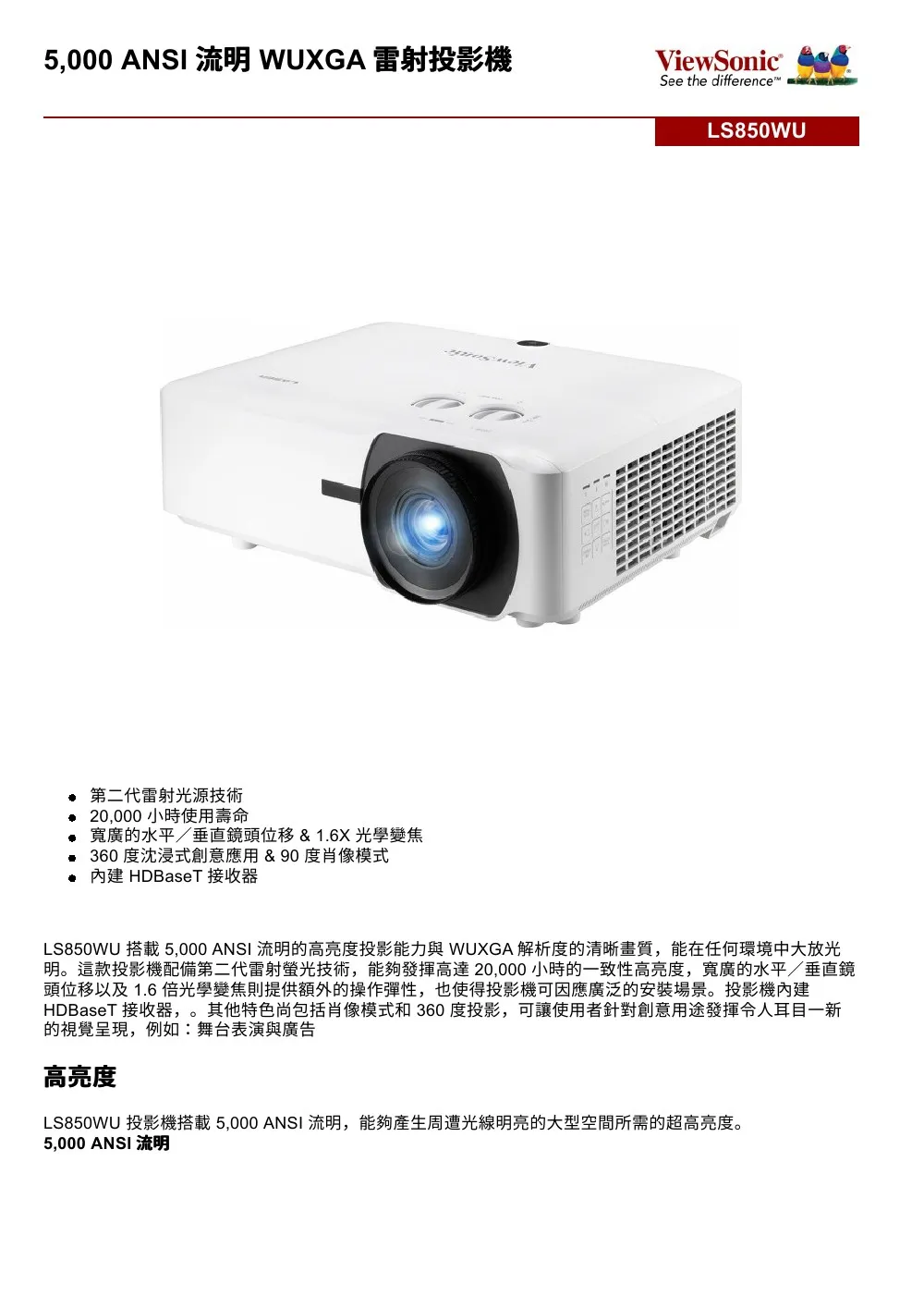 商品ViewSonic PA503W 商用教育投影機3800ANSI
