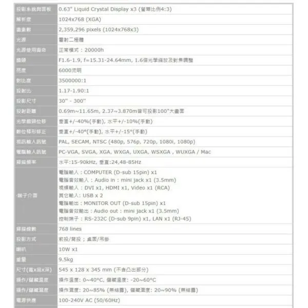 商品EPSON EB-U50 高亮度3700流明 WUXGA高解析度 3LCD防塵投影機