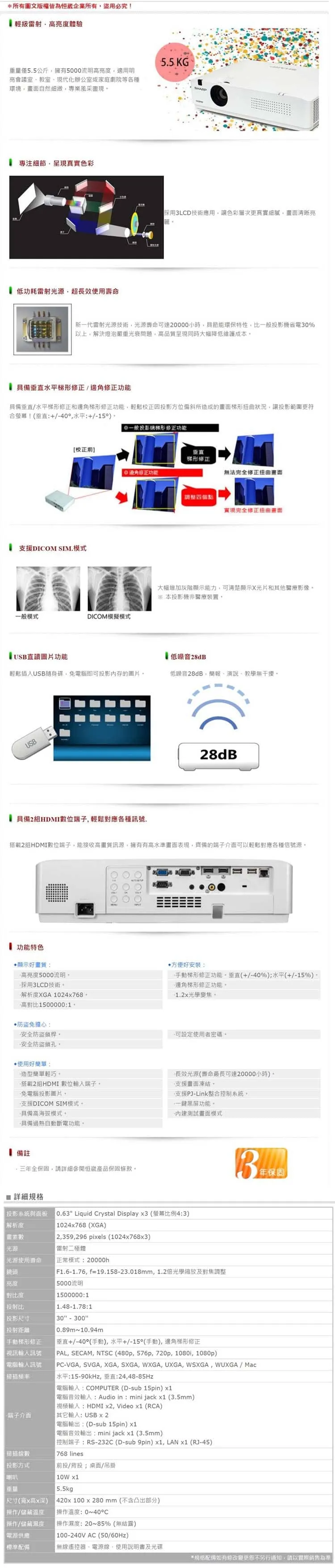 商品SHARP PG-CE45X XGA4000流明 輕量級雷射投影機