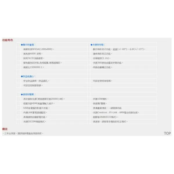 商品Panasonic 國際牌 PT-LMW460T 4600流明 WXGA 商用雷射投影機
