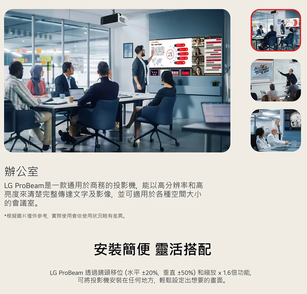LG BU60RG ( BU60RG.ATT ) 雷射商用投影機,非常適合商務會議、大型會議和協作。它提供清晰的影像,透過更好的協作幫助提高工作效率和生產力。