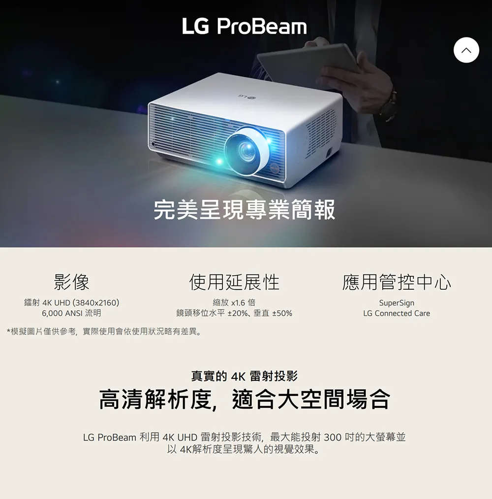 - 4K UHD (3840×2160) 鐳射技術/ 830 萬像素