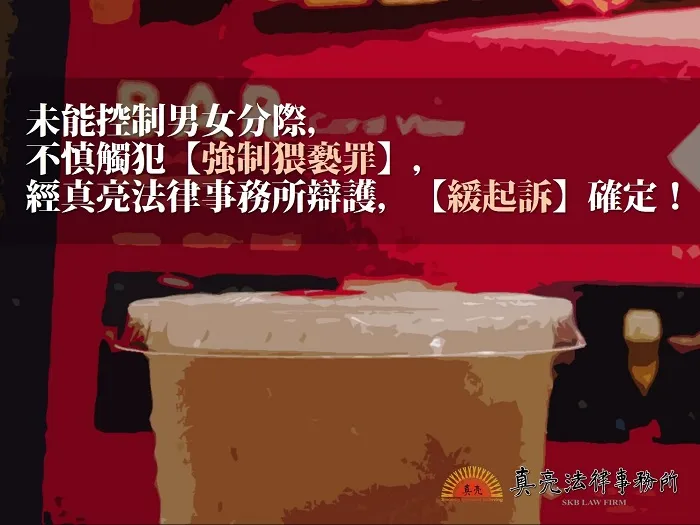 「未能控制男女分際,不慎觸犯【強制猥褻罪】,經真亮法律事務所辯護,【緩起訴】確定!」由真亮法律事務所製作,以創用CC 姓名標示-非商業性-相同方式分享 4.0 國際 授權條款釋出。