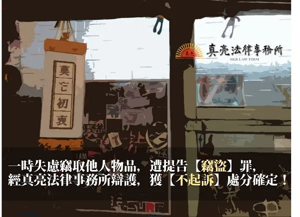 「一時失慮偷竊他人物品,遭提告【竊盜】罪,經真亮法律事務所辯護,獲【不起訴】處分確定!」由真亮法律事務所製作,以創用CC 姓名標示-非商業性-相同方式分享 4.0 國際 授權條款釋出。