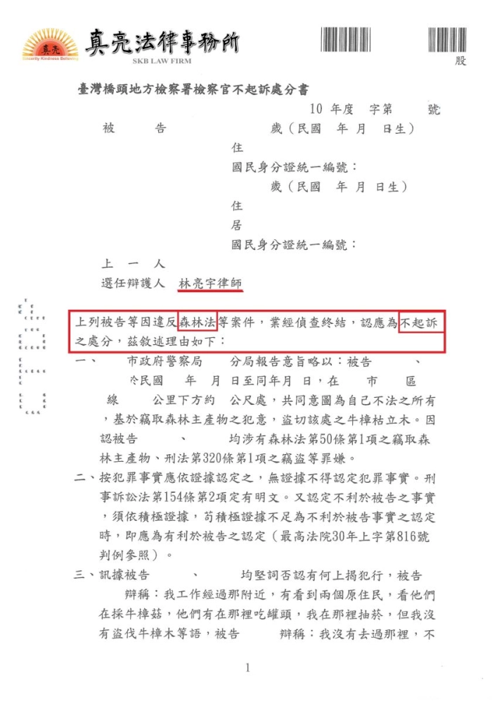 「莫名其妙遭移送【違反森林法】,經真亮法律事務所辯護,獲【不起訴】處分確定!」由真亮法律事務所製作,以創用CC 姓名標示-非商業性-相同方式分享 4.0 國際 授權條款釋出。