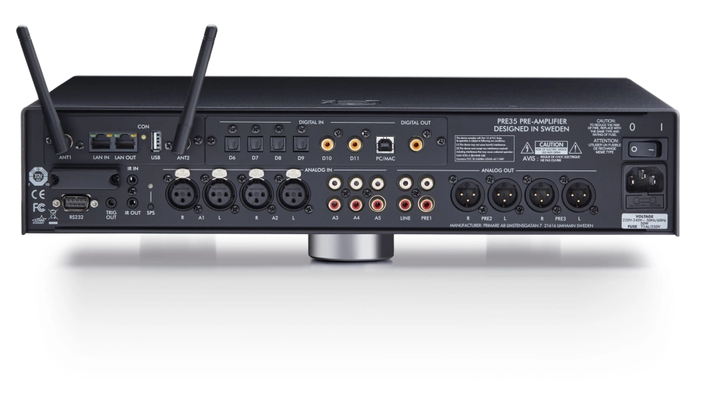 PRE35 模組化前級擴大機具有雙 XLR 輸入和輸出、全平衡類比前級放大電路和模組化結構,可隨時向全類比前級擴大機添加複雜的 DAC 和 Prisma 網路模組。