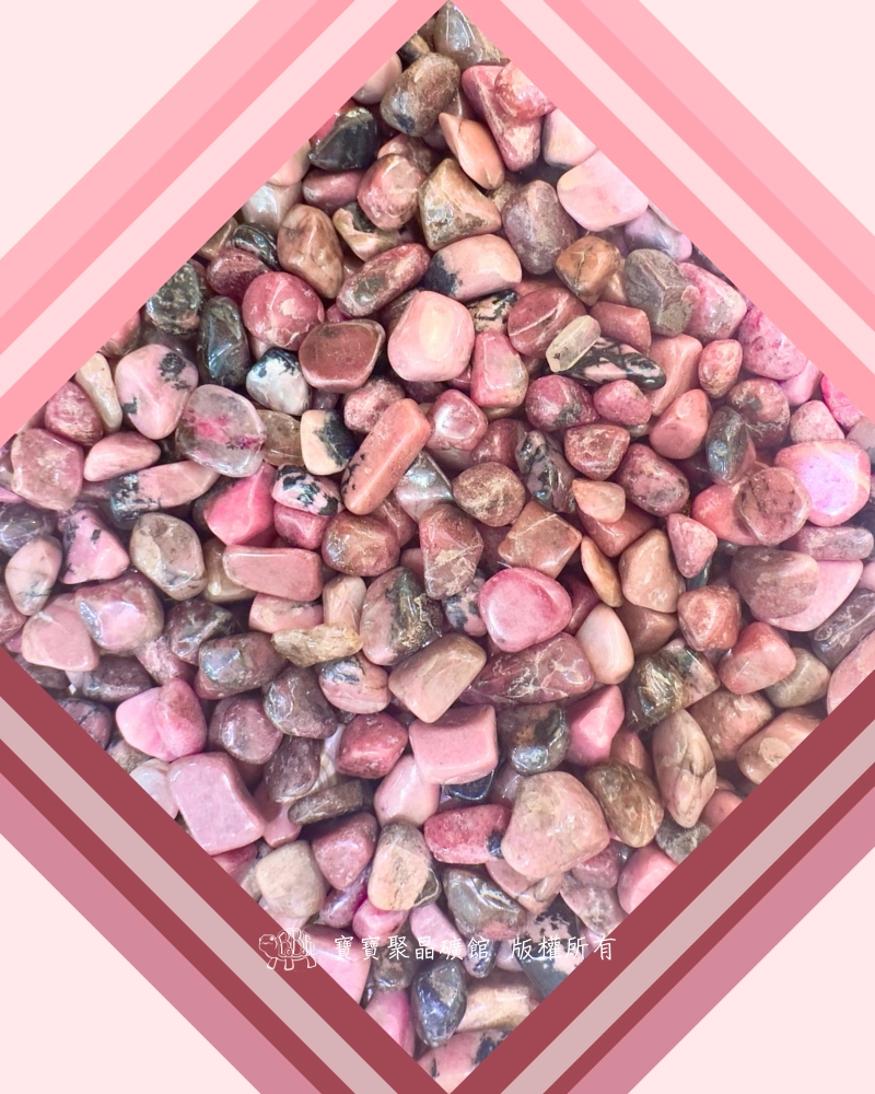 玫瑰石的化學成分為 MnCO₃,因含錳量高,色澤常呈現柔和卻飽滿的粉紅、桃紅或帶白色紋帶,也稱為「薔薇輝石」。