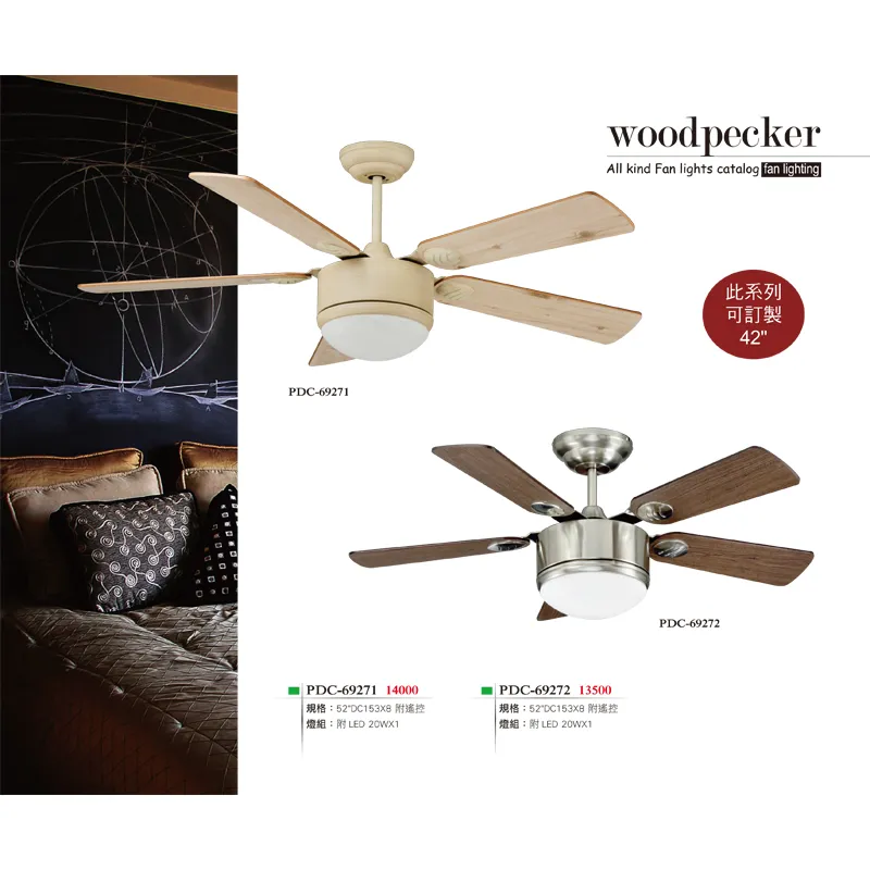 商品啄木鳥 台灣製42吋 / 52吋吊扇+燈具 附遙控器 PAC-69241 PAC-69251 PAC-69253