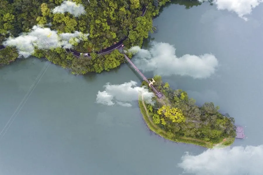 顧名思義,因為湖形很像梅開五瓣,加上湖心有一小島如花蕊。三面環山,平時湖面若鏡,但若微風吹拂,波光粼粼,繞湖畔而行,或騎自行車,都可欣賞無限靜謐美景。