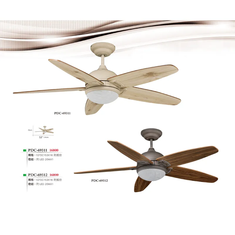 品名: DC 直流變頻 53吋吊扇+ LED燈具 (附遙控器)