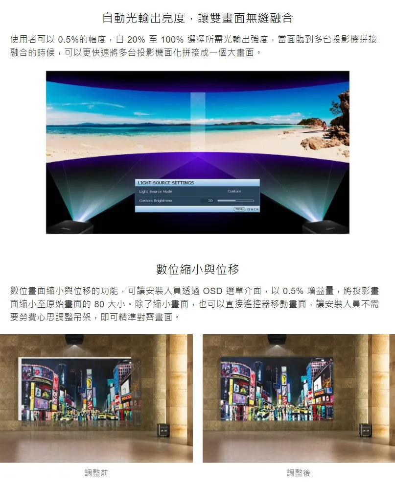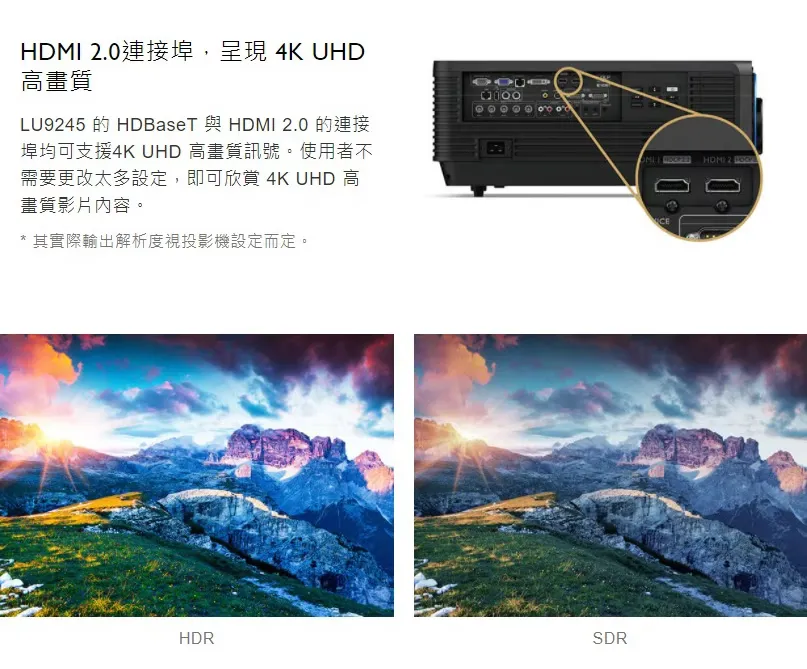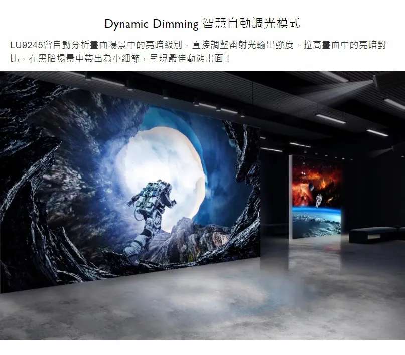 來自世界第一 DLP 品牌的 BlueCore 雷射投影機- BenQ LU9245 BlueCore 雷射投影機可達到絕佳的 7000 ANSI 流明亮度和 3,000,000:1 對比度,即使在明亮的環境光下,也能夠擁有卓越的觀看體驗,是大型場地應用的最佳選擇。