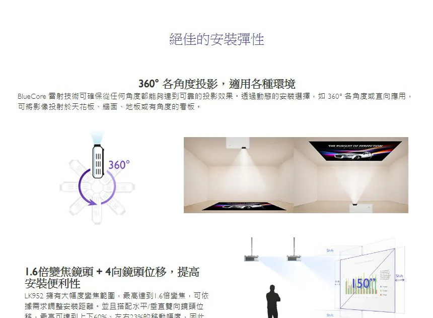 | 顯示尺寸 | 30″ ~ 300″ | |