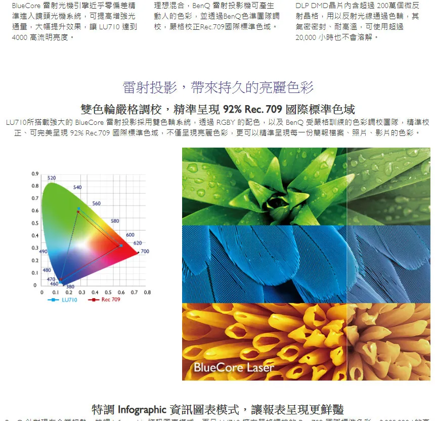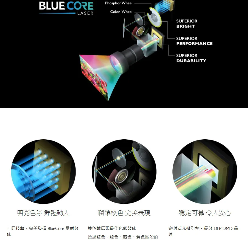 | 光學投影技術 | DLP 單片式 0.48″ WUXGA | |