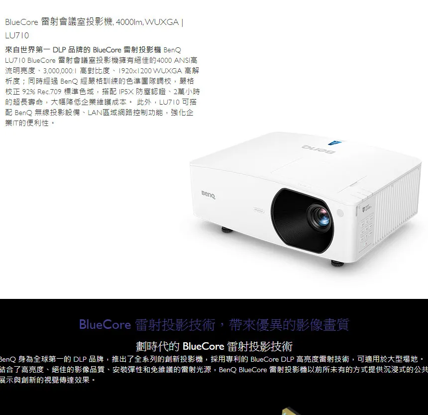 商品BenQ LU960UST WUXGA 5200流明 商用超短焦雷射投影機