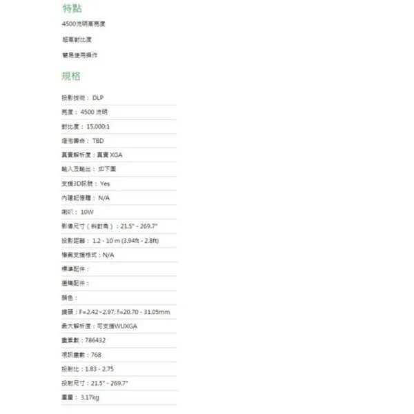 商品Vivitek DX977WT XGA 6000 流明 超高亮度商務投影機 原廠公司貨