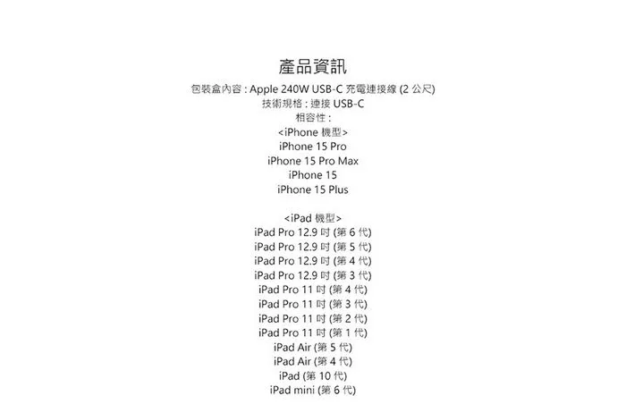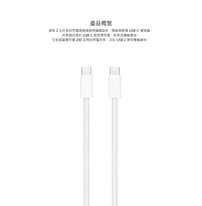 • Apple Type C對Type C 2M原廠傳輸線(盒)