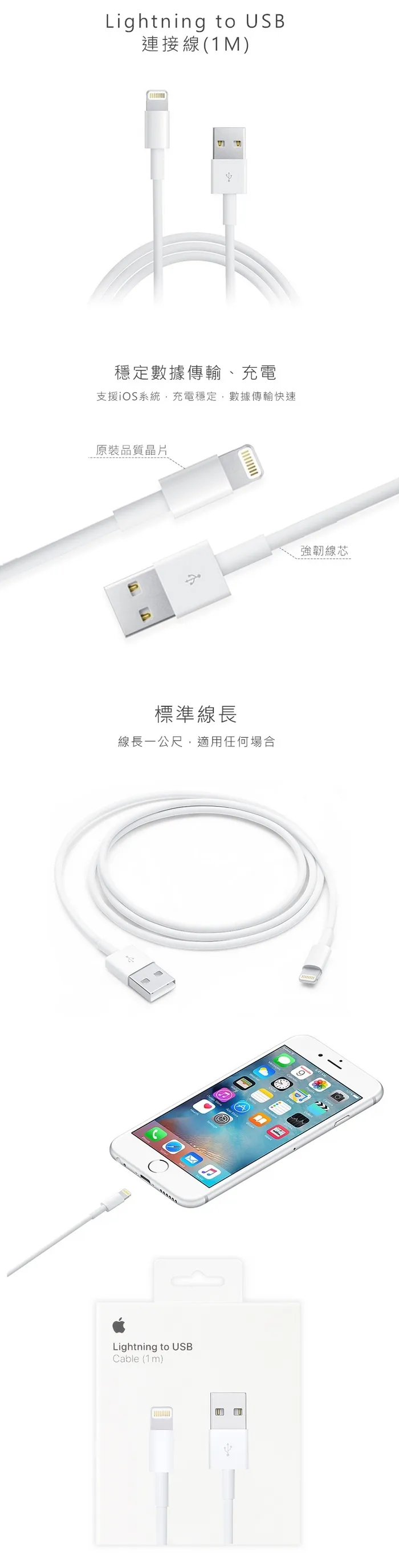 Apple 原廠 Lightning對USB-1m 傳輸線 / 充電線