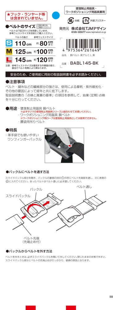 腰帶長度:1110 / 1250 / 1450mm