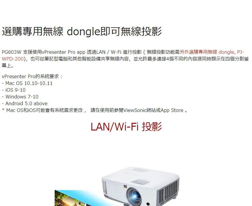 商品ViewSonic PG706WU投影機4000ANSI