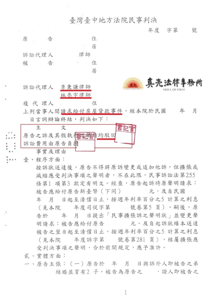 商品父親生前未借錢,不幸身故後竟有人出面討債,經委任真亮法律事務所,確保權益【成功】,【勝訴】確定!