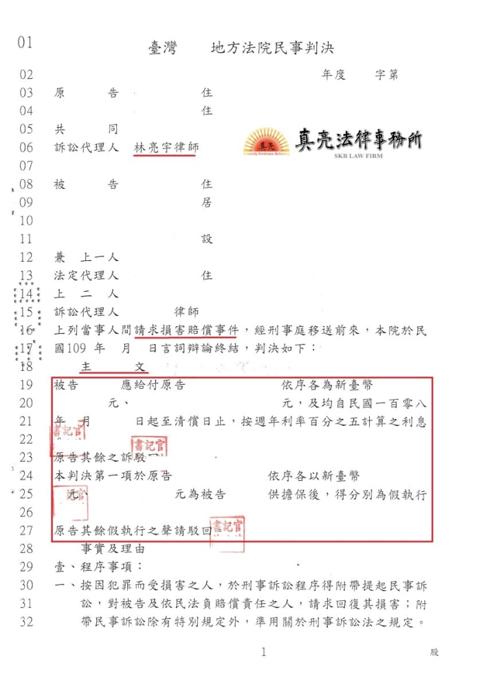 「發生職業災害不幸死亡,經家屬委託真亮法律事務協助,獲合理賠償【勝訴】確定,但被告沒錢賠償,再協助聲請犯罪被害人遺屬補償金!」由真亮法律事務所製作,以創用CC 姓名標示-非商業性-相同方式分享 4.0 國際 授權條款釋出。