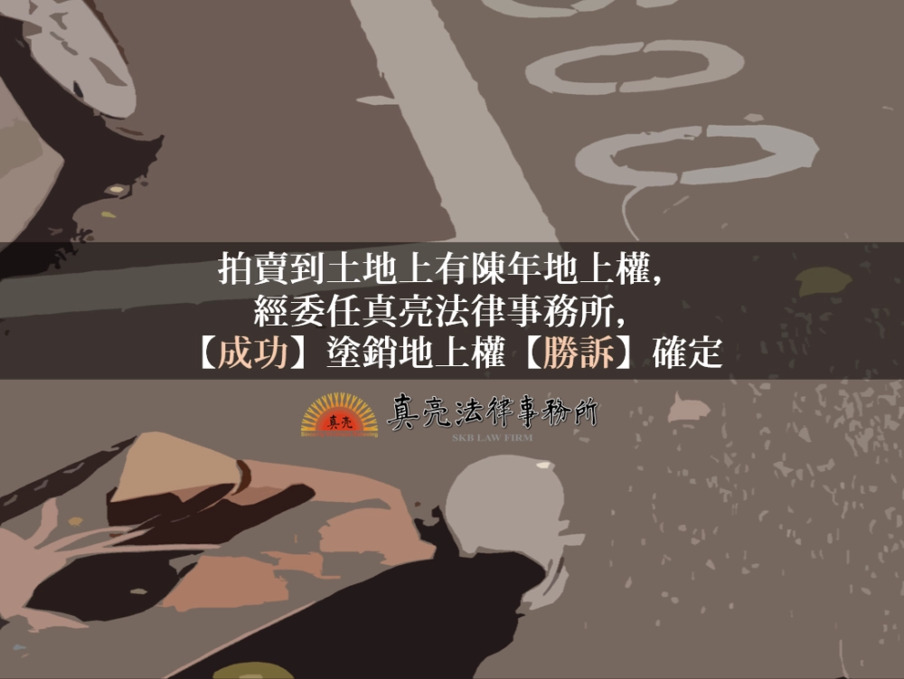 「拍賣到土地上有陳年地上權,經委任真亮法律事務所,【成功】塗銷地上權【勝訴】確定」由真亮法律事務所製作,以創用CC 姓名標示-非商業性-相同方式分享 4.0 國際 授權條款釋出。