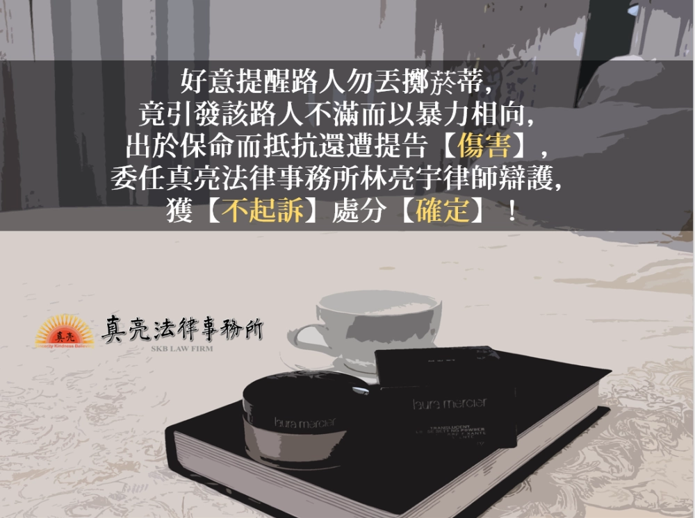 大多數的人每天都過著自己的生活,從事自己的工作,安分守己,但能想像,某天只是去買晚餐,走在路上看到路人亂丟煙蒂,好意提醒該路人勿丟煙蒂,竟然引發該路人不滿,而以拳頭出手毆打,無端遭到毆打已經很倒楣了,最後還雪上加霜被提告【傷害】的慘況嗎?