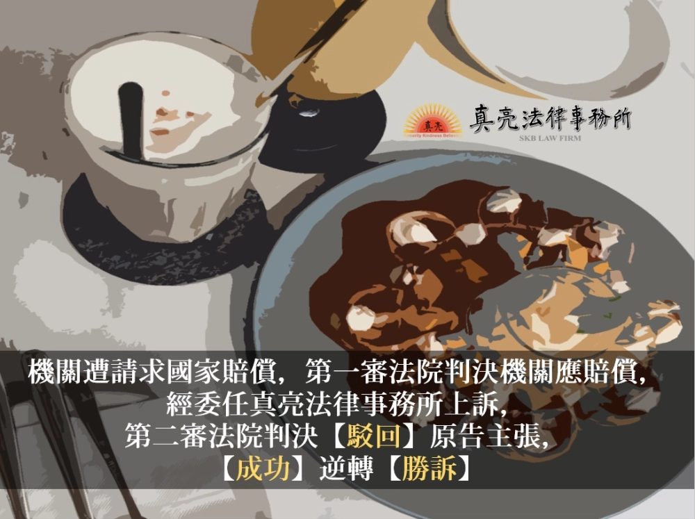 「機關遭請求國家賠償,第一審法院判決機關應賠償,經委任真亮法律事務所上訴,第二審法院【駁回】原告主張,【成功】逆轉【勝訴】。」由真亮法律事務所製作,以創用CC 姓名標示-非商業性-相同方式分享 4.0 國際 授權條款釋出。
