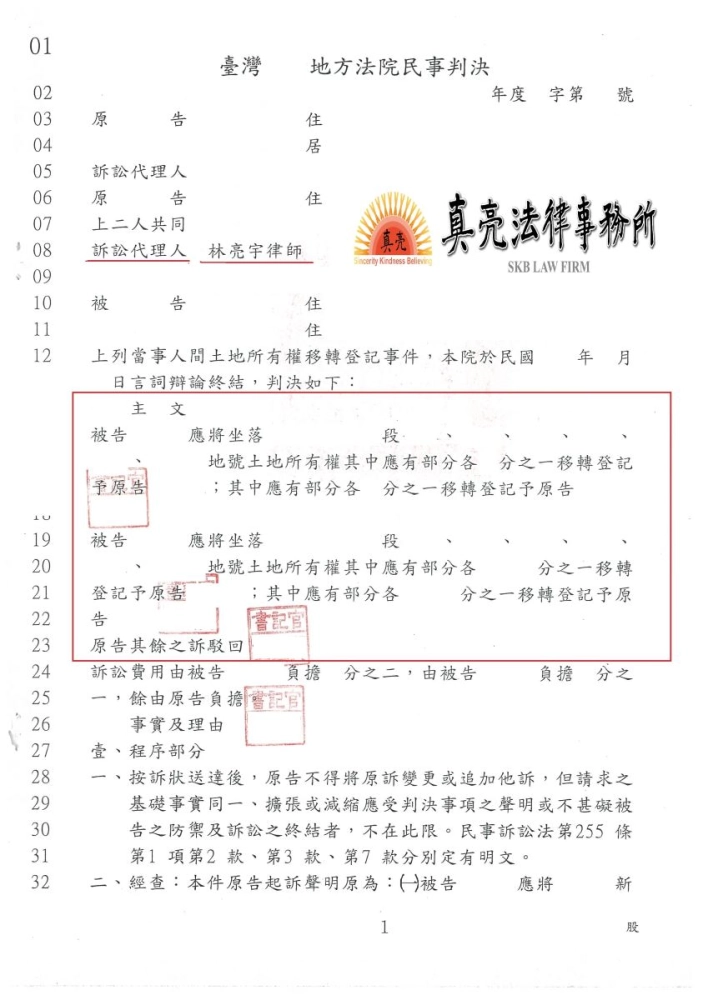 商品遺產繼承其他繼承人消極面對,經委任真亮法律事務所,以最迅速、合理之方式【成功】判決確定。