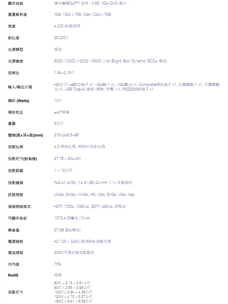 商品ROLY RL-S400W WXGA,3500流明 顛覆傳統雷射短焦投影機 小空間大畫面長效鐳射畫面