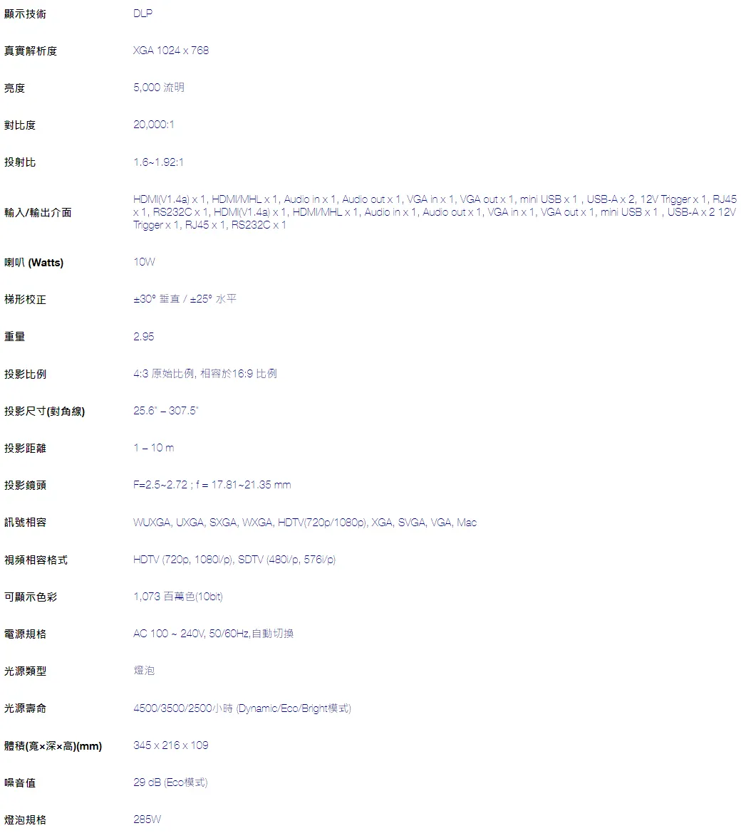 商品EPSON EB-X52 XGA 3800流明 商用高亮彩投影機