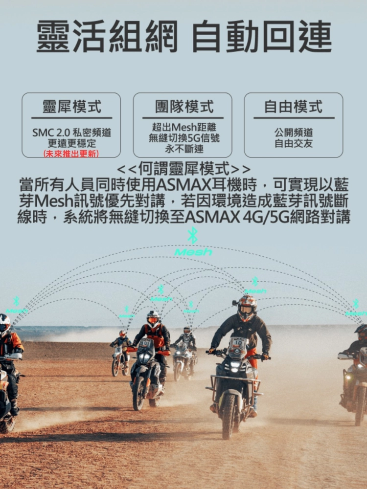 🏆8人"真Mesh"網狀動態連線,小群組車隊溝通暢行無阻