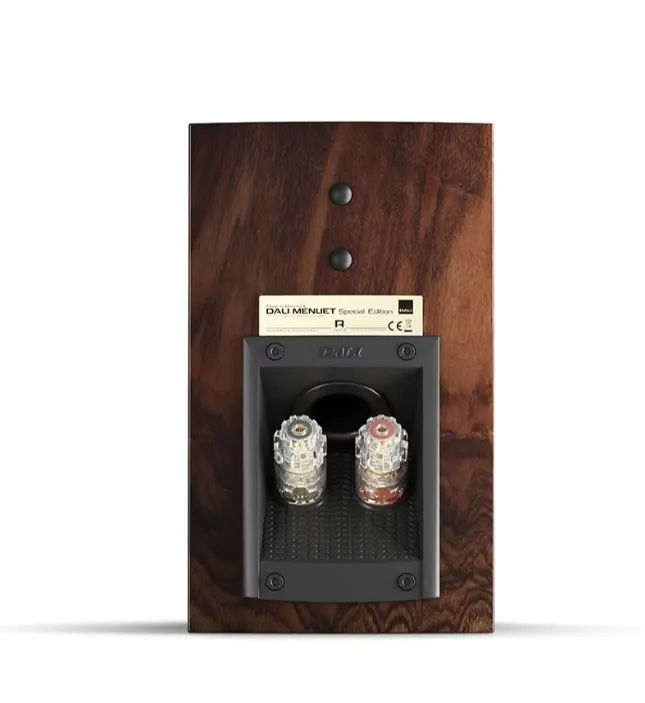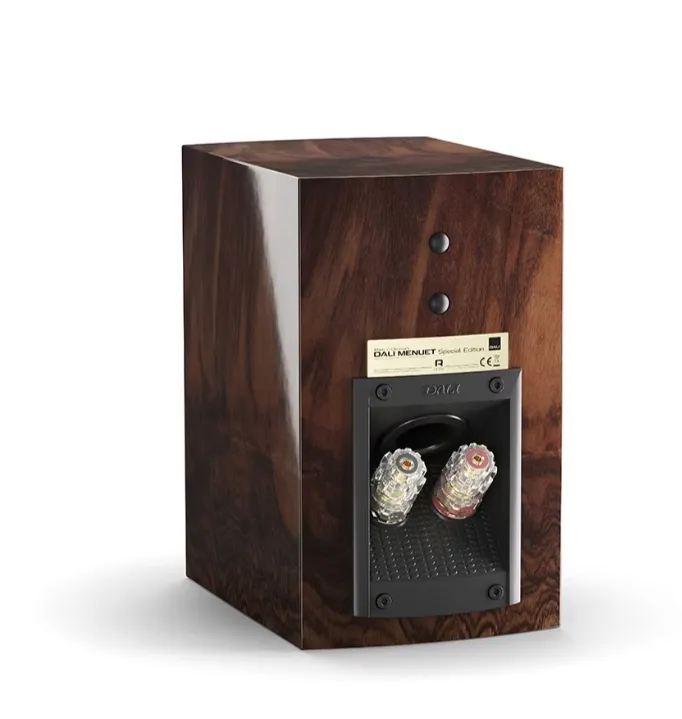 DALI MENUET SE 提供兩種引人注目的飾面:高光澤野生胡桃木和天然胡桃木貼面。每一對都經過精心搭配,呈現出真正獨一無二的手工質感。