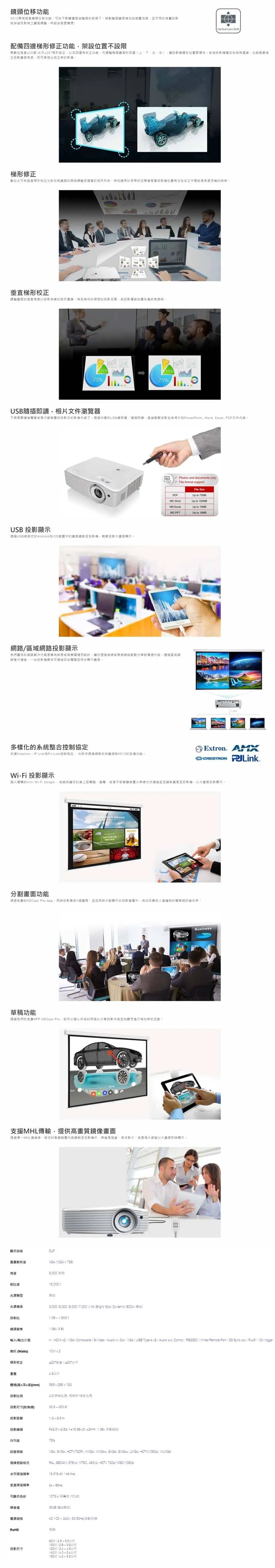 商品Optoma HD36UST 4000流明 Full HD 超短焦投影機