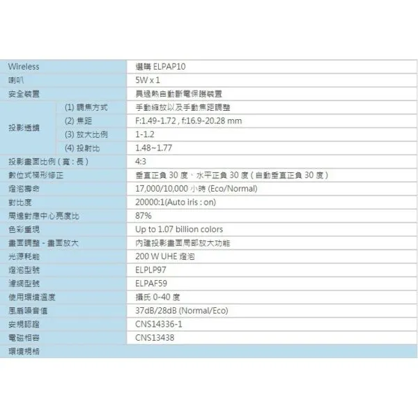 商品 EPSON LightScene EV-100 2000流明 雷射投影燈 適用商場 展場投射