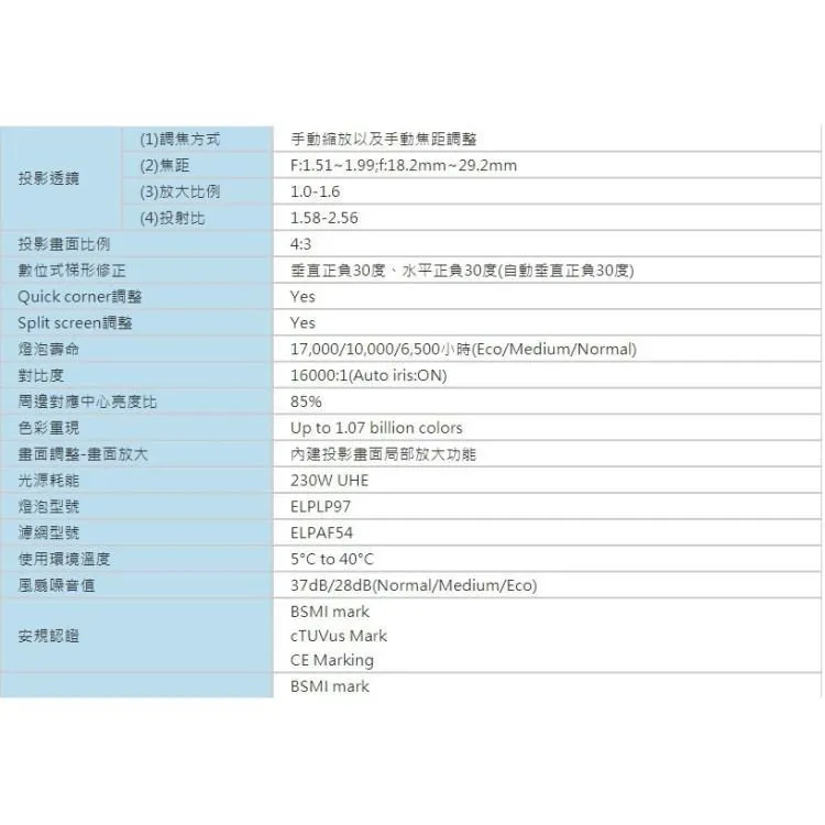 商品EPSON EB-L530U 5200流明 WUXGA 雷射高亮度投影機