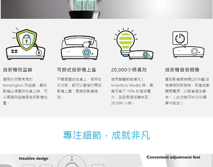 | 燈泡 | 一般 5,500 小時 經濟 7,000 小時 智慧節能 10,000 小時 節能燈泡 15,000 小時 長效節能 20,000 小時 | 小時 |