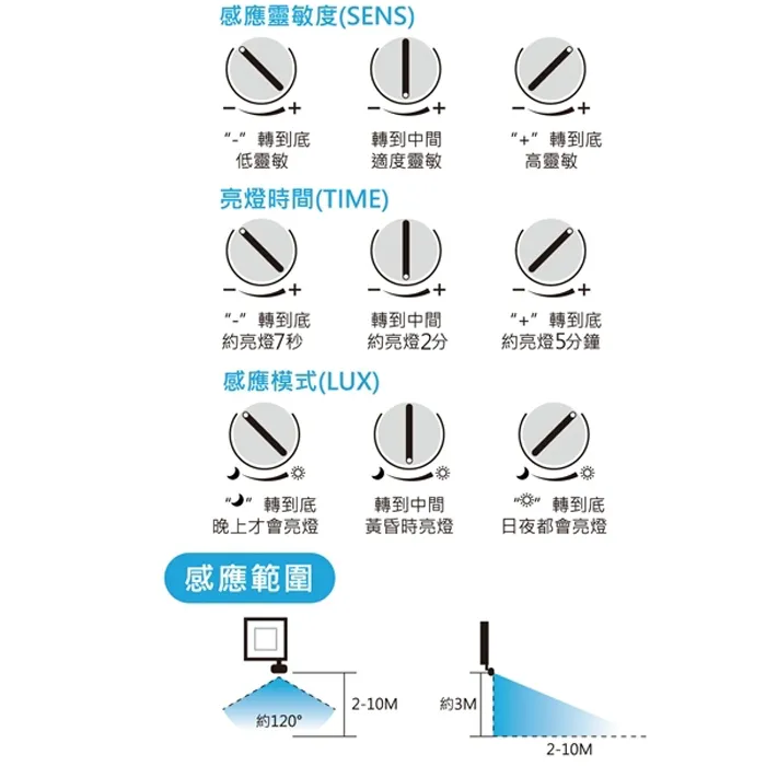 亮燈時間:7秒~5分(可調整)