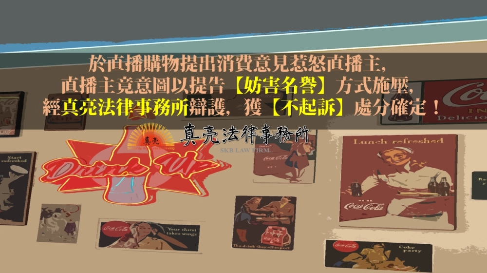 「於直播購物提出消費意見惹怒直播主,直播主竟意圖以提告【妨害名譽】方式施壓,經真亮法律事務所辯護,獲【不起訴】處分確定!