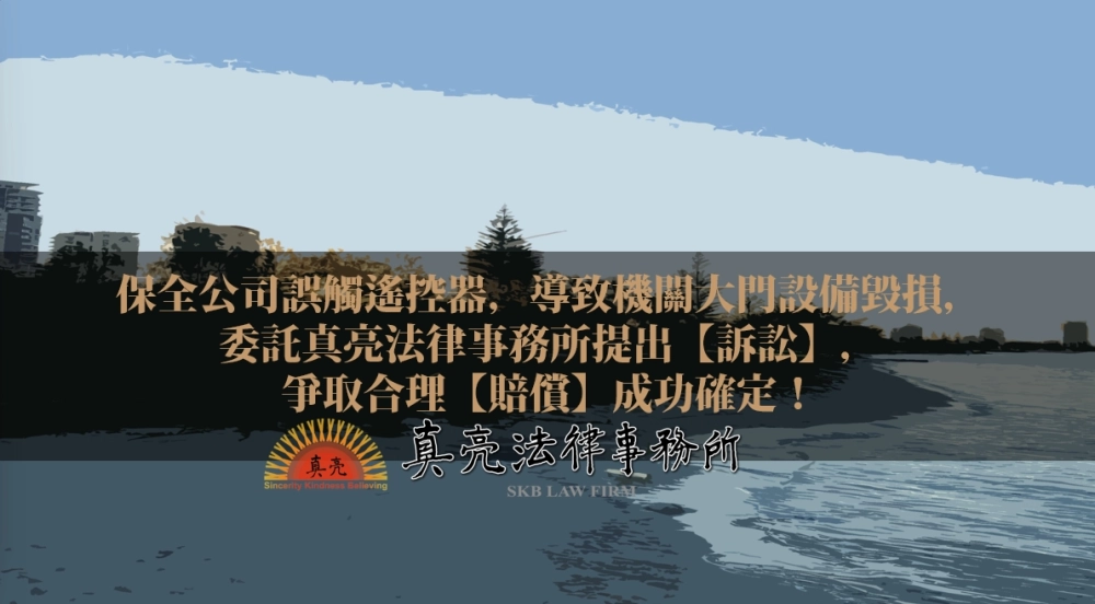 「保全公司誤觸遙控器,導致機關大門設備毀損,委託真亮法律事務所提出【訴訟】,爭取合理【賠償】成功確定!」由真亮法律事務所製作,以創用CC 姓名標示-非商業性-相同方式分享 4.0 國際 授權條款釋出。