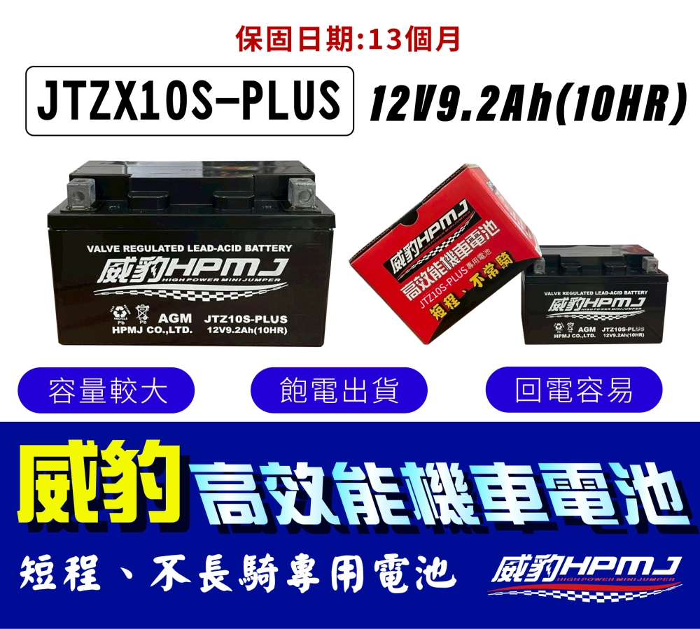 威豹高效能10S機車電池 短程距離和不常騎 免加水鉛酸電池 台灣製造 加大容量